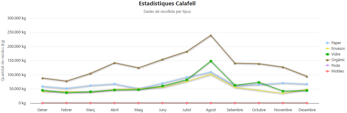 RECOLLIDA DE RESIDUS A CALAFELL. ANY 2019